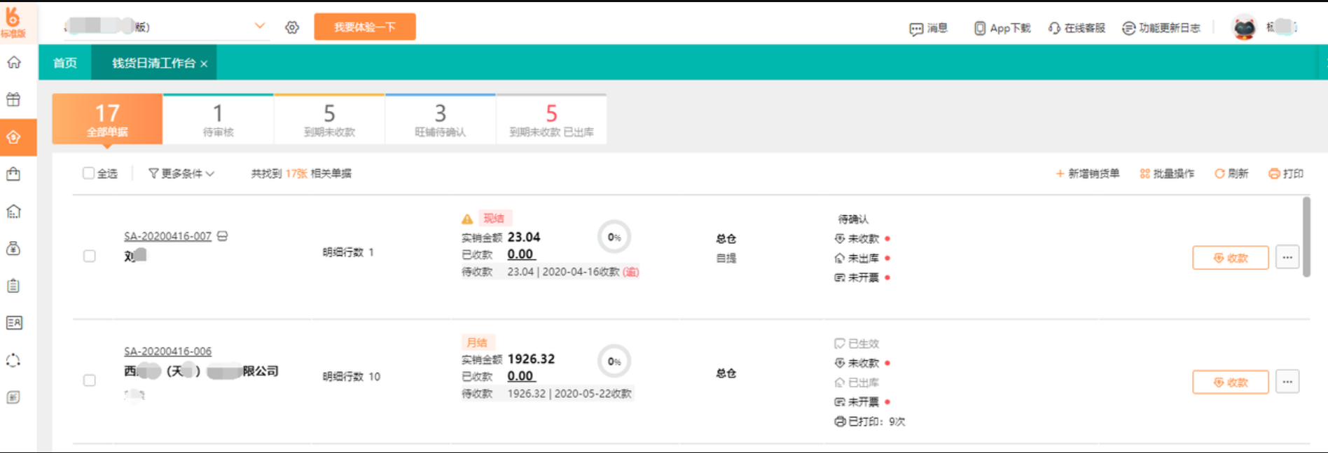 天津易企使用的好生意+旺铺,打造私域流量,实现下游客户自助在线下单,客户在线上旺铺订货后,易企接单员在电脑会有语音提示,打开钱货日清工作台,确认线上订单,核对出库仓库,订单金额、商品可用量及客户欠款,确认无误,后续发货处理。