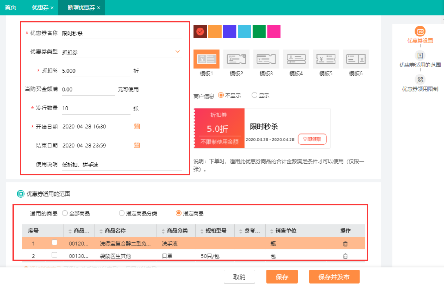 天津易企推出限时促销活动,每天举行1,2款商品特价,吸引客户购买,提高营业额。优惠券活动不仅能促进消费者购买还能促进购买量,还能吸引新客户关注旺铺