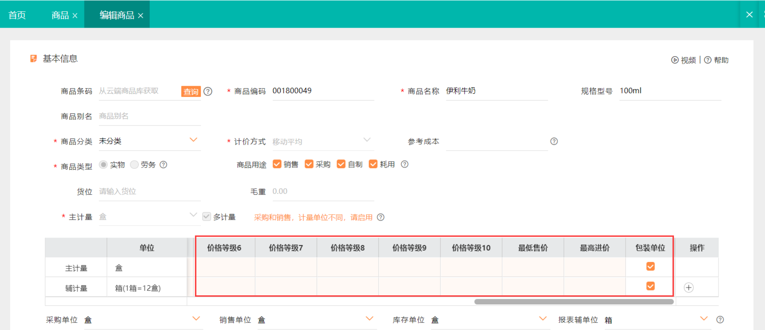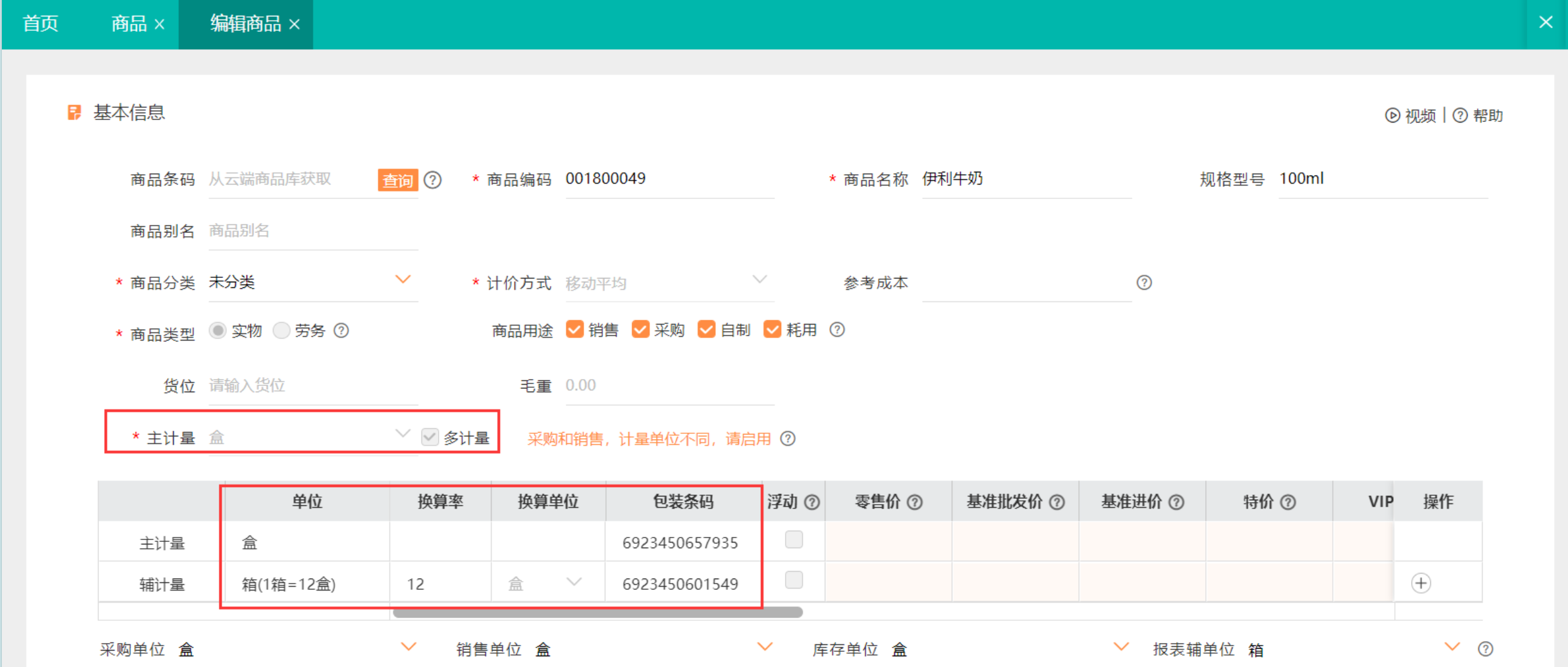 1、商品多单位,大单位,小单位需要有包装条码,多规格;