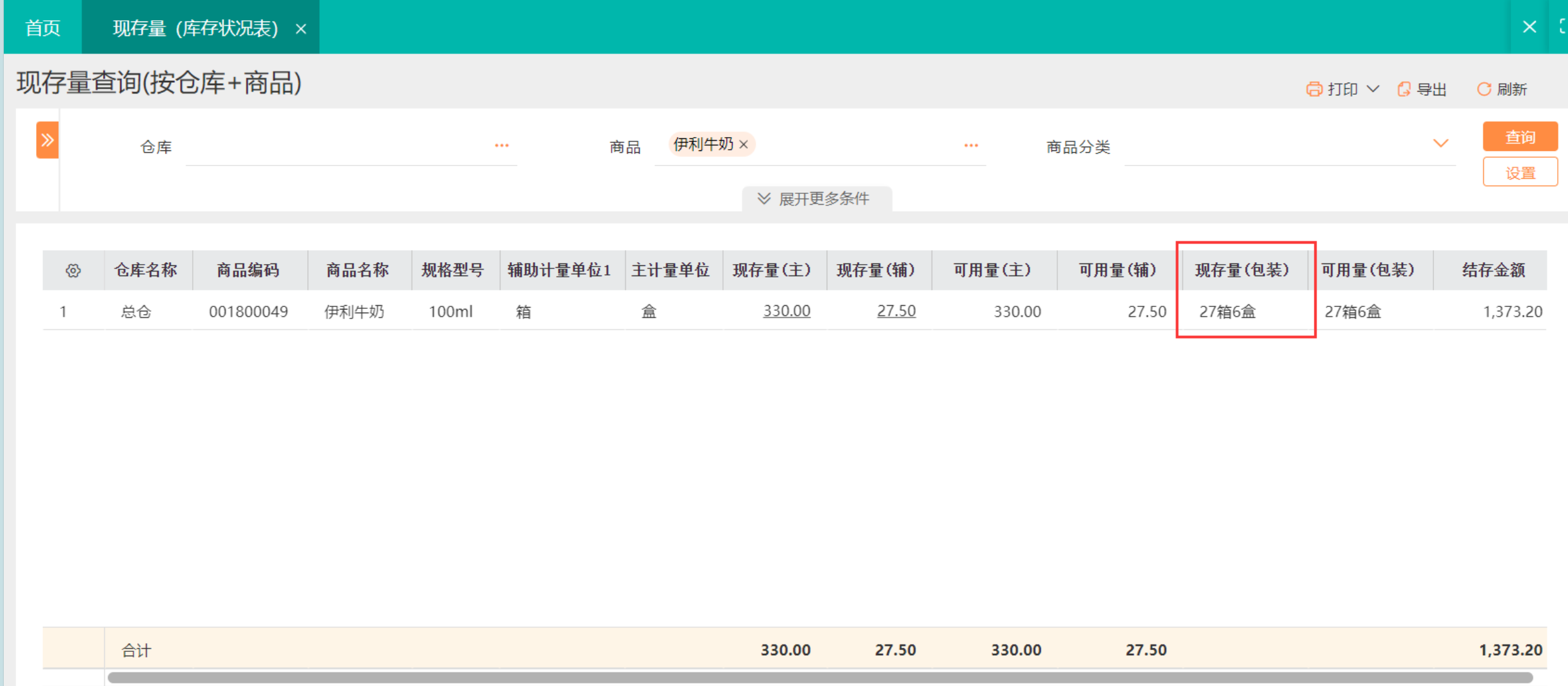 查看库存量时可以直接看到箱数,盒数,方便库存核对。