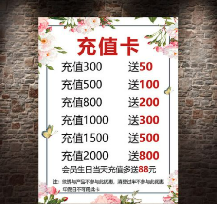 一对小夫妻花100万开了一家美容院,做了一个活 动,充10万得10万,额外再赠送2万元的护肤品;充5万得五万,充3万得2万,充1万得5千,充的越多得到的越多。