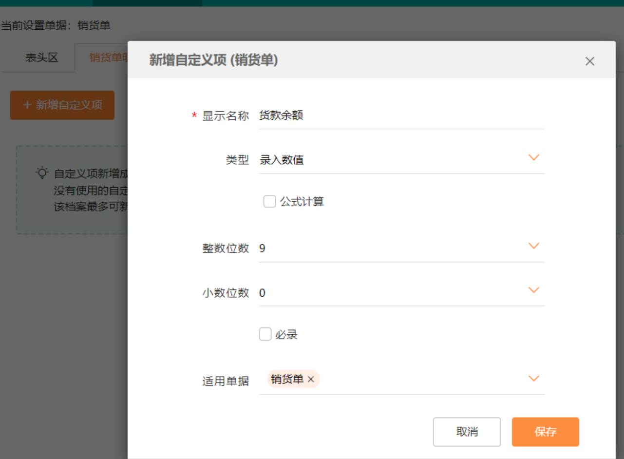 增加自定义项——货款余额
