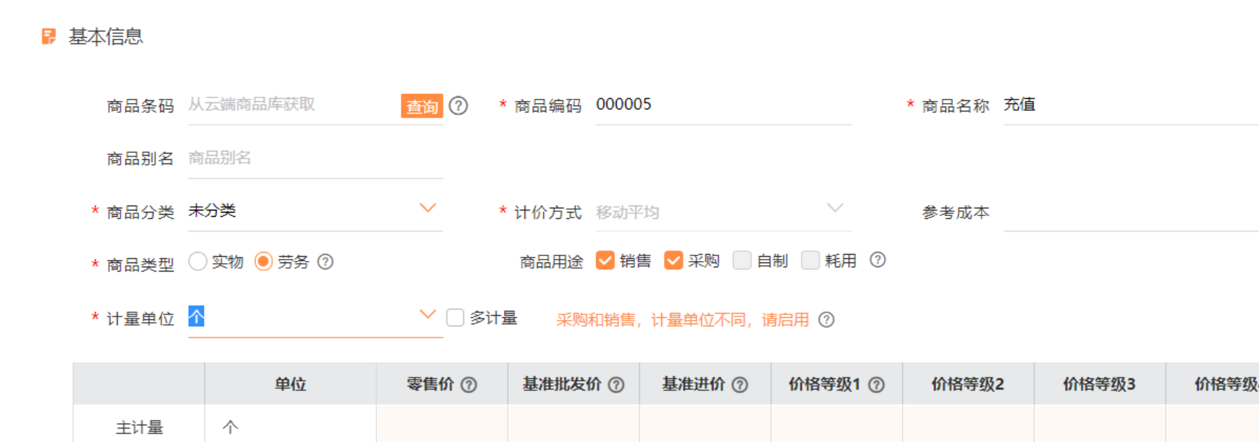 ,增加一个商品为充值