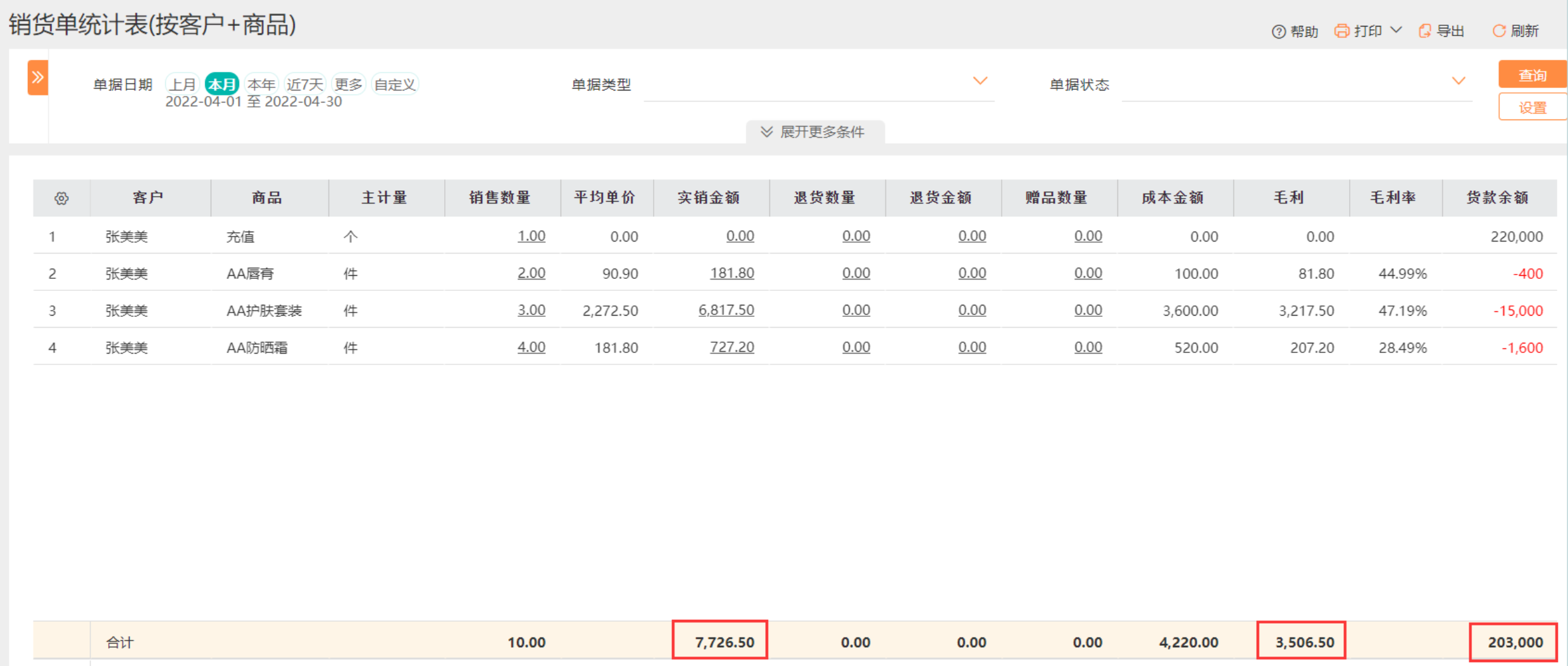 客户购买商品,将客户实际扣除储值金额的数值同时填到货款余额中。后续报表查询可以 一目了然 看到客户储值余额。