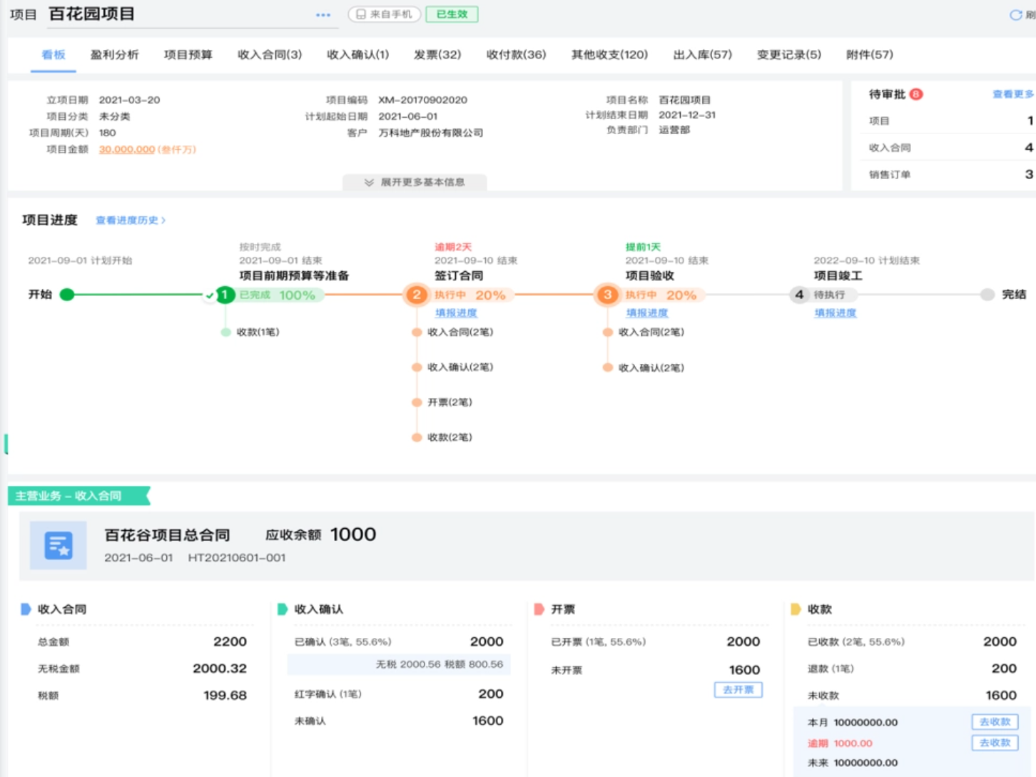2、负责早教项目的公司账套启用【好业财进销存+项目合同+财务】,项目型业财一体,以项目作为核算对象,实时项目全过程管理,彻底改变传统业财核算方式;实现项目的收入、出库、开票等情况实时查询,协助领导做好数据分析。