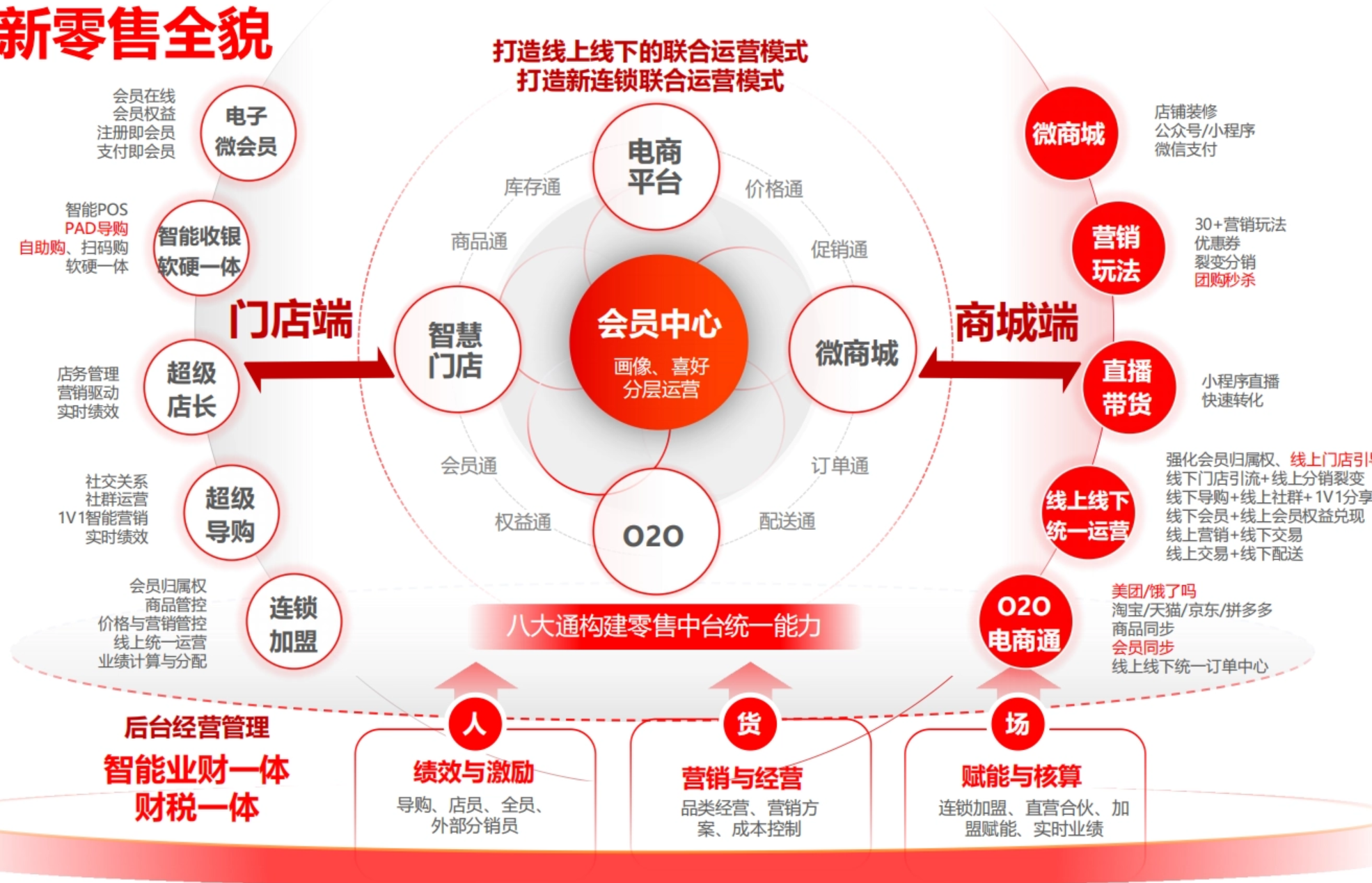 3、连锁门店管理的账套启用【好业财进销存+微商城(线上商城)+门店收银+会员+营销推广+财务】,会员及促销方案统计管理,各门店线下业务通过POS收银,线上业务是客户在微商城里选择就近的门店下单,选择自提或物流配送。