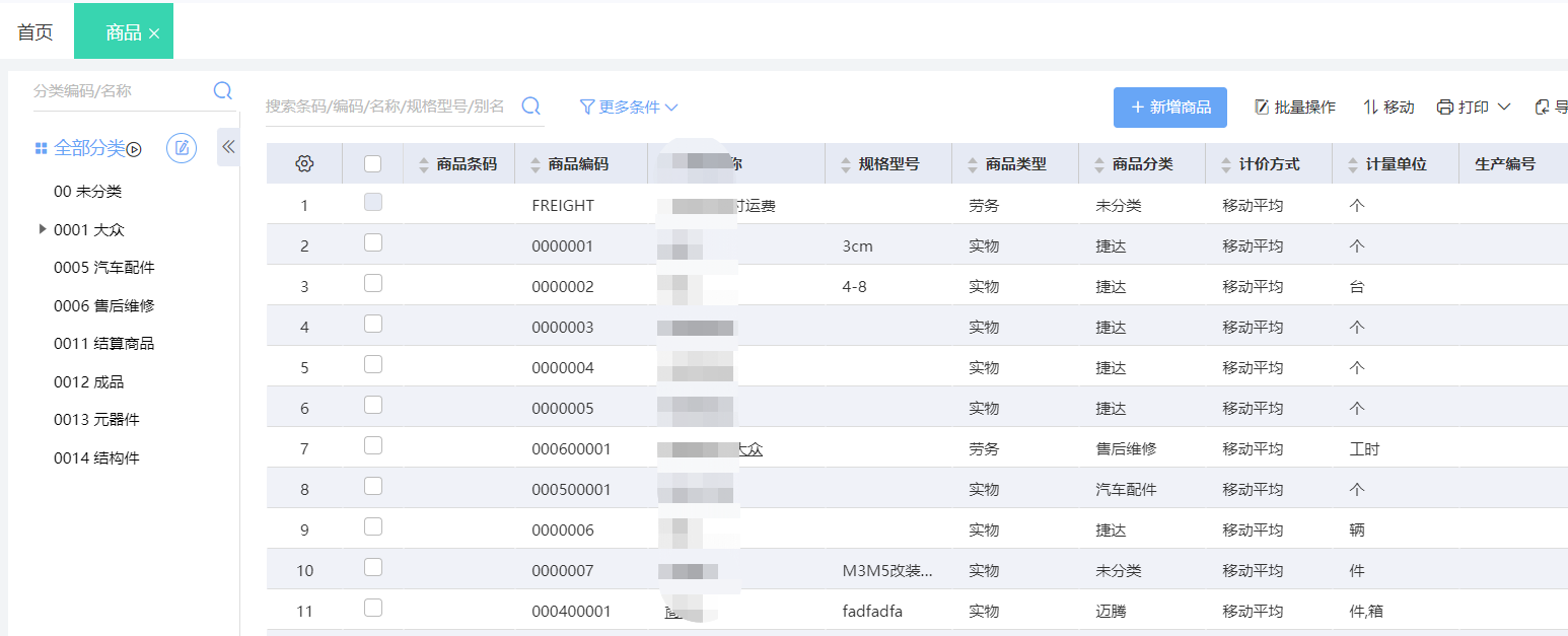商品种类、品牌或适配车型多,适用于按类型用途 +品牌来进行分类,明细的商品信息在档案中用具体型号 +适配车型组合维护,如某轮胎属于轮胎系列下的某个品牌,同时该轮胎规格和适配车型在明细档案中体现,当业务员报价或客户询价时,可以快速定位商品且根据适配车型判断汽修厂的终端客户对商品受众情况。