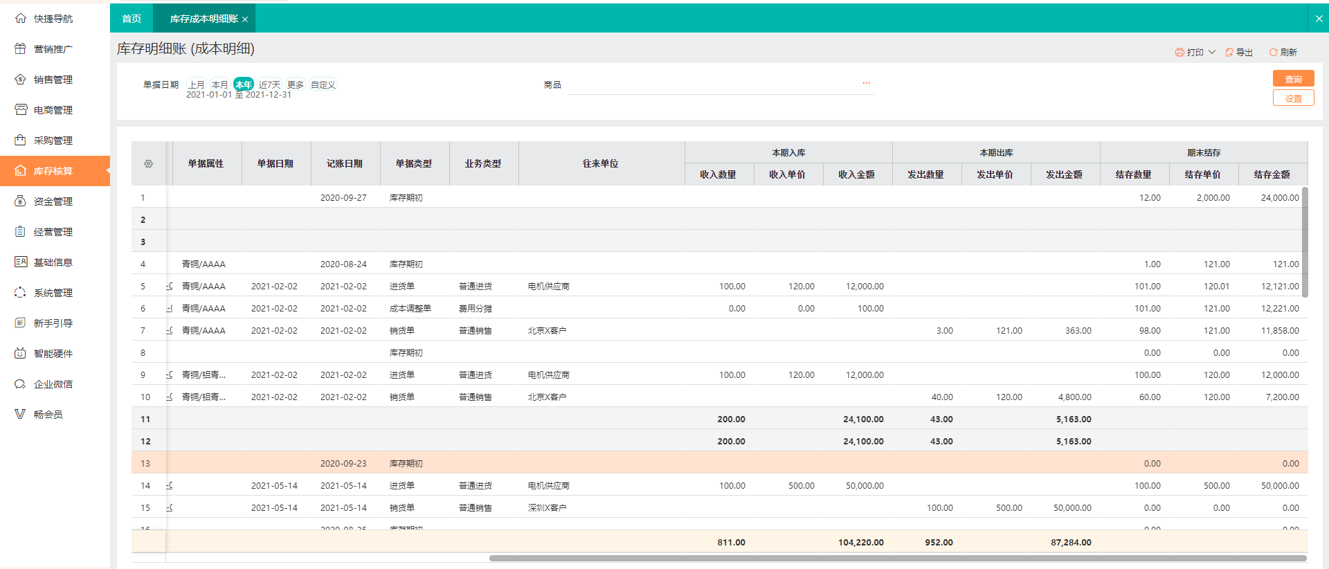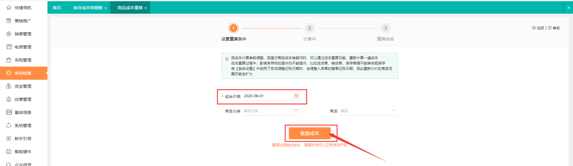 如果成本异常的话可以看到具体是做的哪个单据开始导致的异常,做【商品成本重算】,修正或重算商品成本