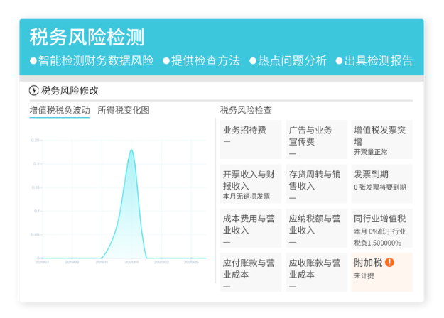 解决了账务和资金问题,领航还存在着税务管理的烦恼。用友·好会计财务软件提供的税务方案是智能算税指导你报税、测算分析帮助你控制风险。