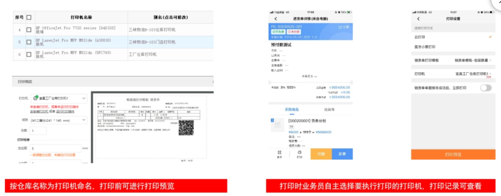( 2)通过好业财云打印功能 业务员开单后可直接将销货单传递至仓库打印机打印。