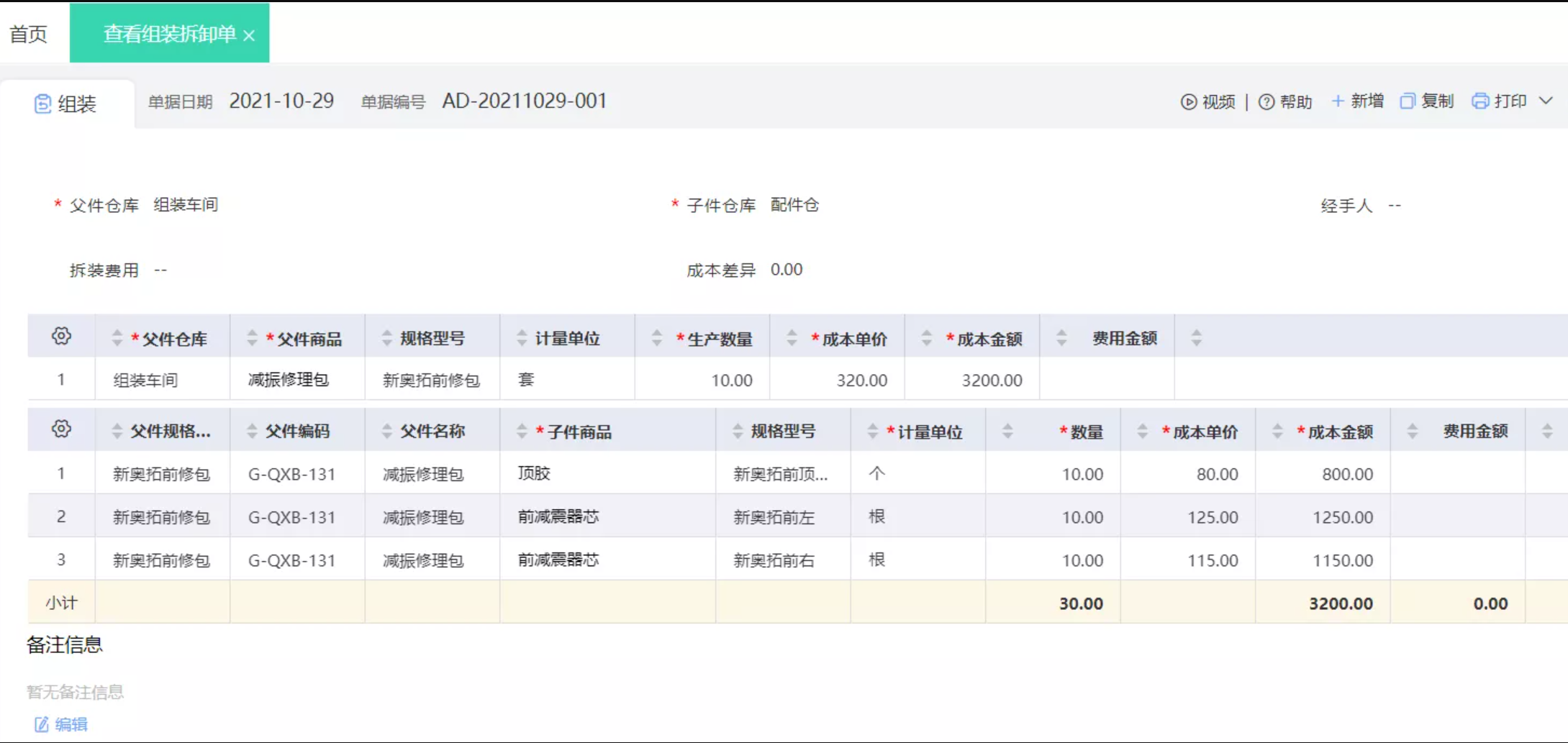 【组合拆卸单】